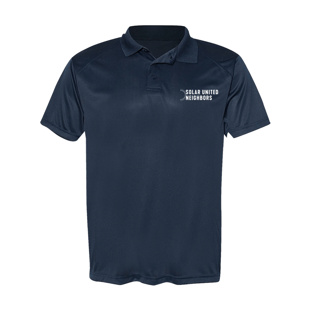 Represent our organization with our classic Solar United Neighbors polo. Made from breathable poly fabric, this buttoned polo delivers all-day comfort. Whether you’re tabling in your community or leading the charge for energy freedom. Featuring a printed Solar United Neighbors logo, it’s the perfect way to show your support in style.